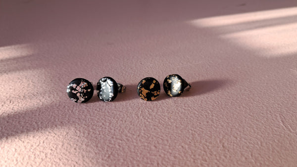 Sort kombineret med enten sølvmetal eller guldmetal. Øreringen er lakeret.