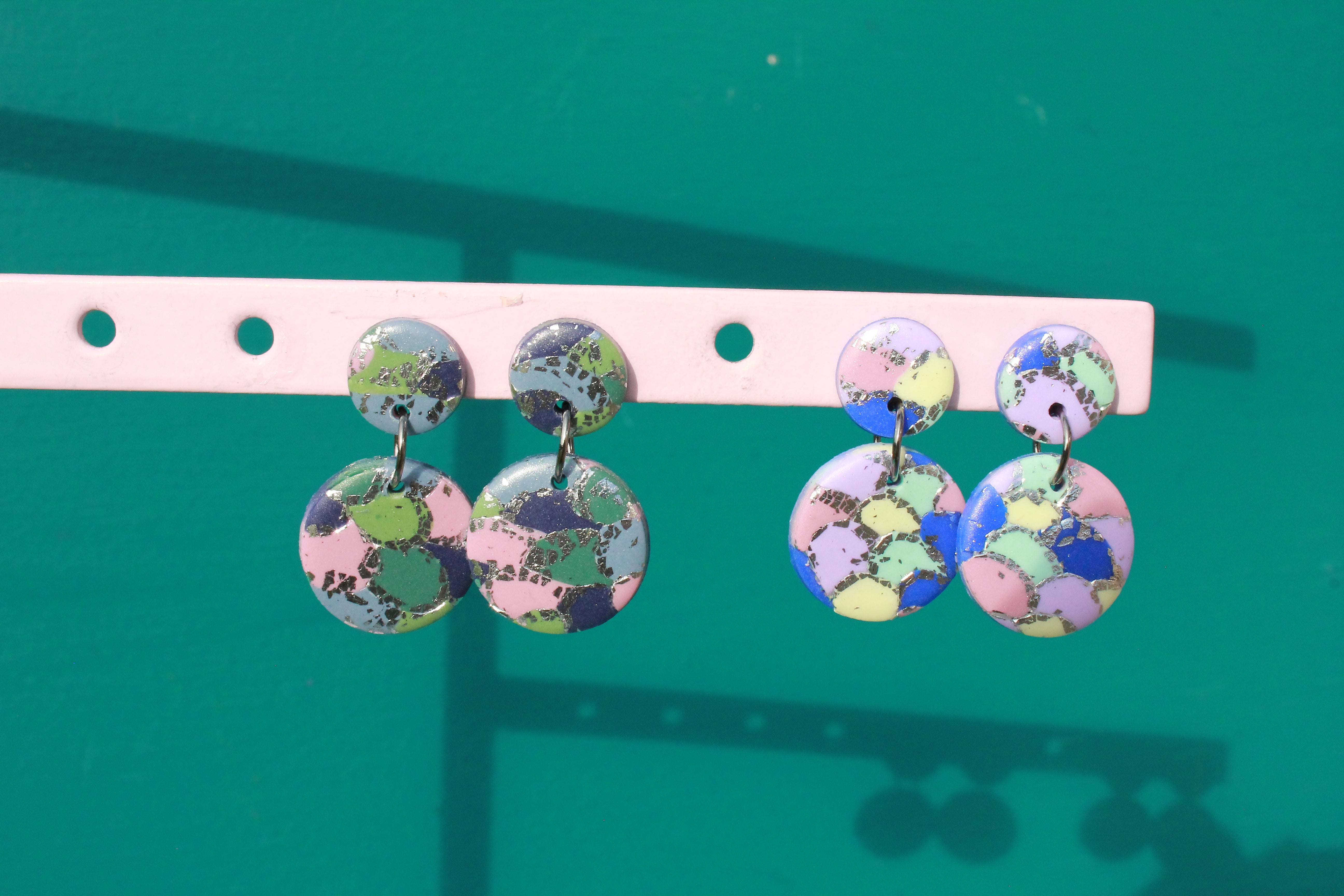 Antallet af, og områderne med farver og sælv, varierer fra øreringe til ørering, da de alle er håndlavede.