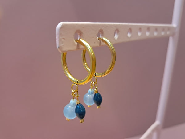 5) Hængslet creol - 1 stk. - i forgyldt stål, med perler i blå nuancer.